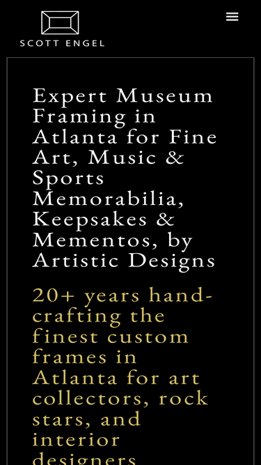 89%Contact Scott Engel for expert museum-quality custom framing in Atlanta for fine art, music & sports memorabilia, and mementos. Appointment Only.