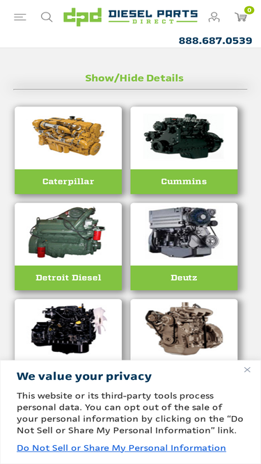 62%diesel parts direct carries a large inventory of diesel engine parts for caterpillar, cummins, detroit diesel, deutz, isuzu, john deere, kubota, northern lights, perkins, westerbeke, and yanmar. we also offer a great assortment of murphy controls and twin disc marine transmission parts.