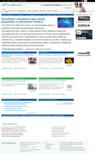 93%oficiální portál věnovaný českým biotechnologiím, výzkumným ústavům, biotech firmám, investorům, studentům a široké veřejnosti. obsahuje databáze firem či orgranizací biotechnologických oborů