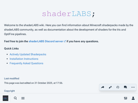 59%welcome to the shaderlabs wiki. here you can find information about minecraft shaderpacks made by the shaderlabs community, as well as documentation about the development of shaders on the optifine pipeline.