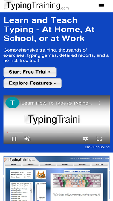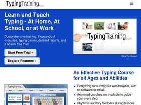 typingtraining.com is an online typing tutor for anyone who wants to learn or teach typing. whether you are learning to type on your own, a parent wanting to teach your children, or work at a school or company, typingtraining.com has a solution to meet your needs. the site includes everything you need: a customizable training program, fun and interesting exercises, tutorials, typing games, and detailed reports. a free trial is available, allowing you to try out the web site at no charge.