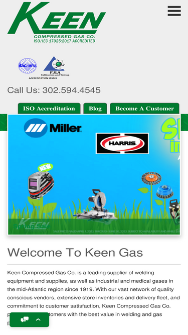 60%Keen Compressed Gas Co is a leading supplier of welding equipment and supplies, and industrial and medical gases in the mid-Atlantic region since 1919.