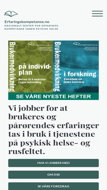 100%Et nasjonalt kompetansesenter som ønsker å samle, gi gyldighet til og spre erfaringskompetanse innen psykisk helsefeltet.