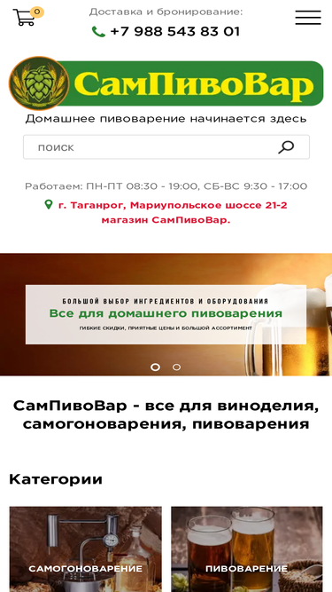 77%в нашем магазине представлено более 1000 позиций: самогонные аппараты, пивоварни, комплектующие, ёмкости, тара, кулинария, ингредиенты для домашнего пивоварения, виноделия и самогоноварения.