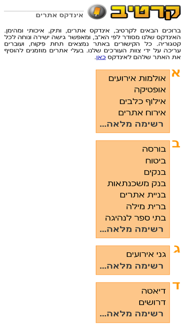 88%אינדקס האתרים קרטיב, הוא בין האינדקסים הוותיקים בישראל. באינדקס תוכלו למצוא אלפי אתרים שנבחרו ע"י צוות העורכים שלנו, מוינו וקוטלגו בקפידה.
