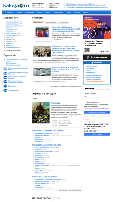 73%самая полная информация о калуге и калужской области. каталог и рейтинг сайтов, телефонный справочник, региональные новости и события, курсы валют, прогноз погоды.