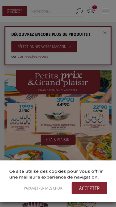 74%En quête d’idées cadeau, de changement de vaisselle ou de nouveaux ustensiles de cuisine ? Retrouvez dans nos magasins Ambiance & Styles nos univers arts de la table, cuisine et décoration toujours plus tendances ! À chacun ses bons moments.