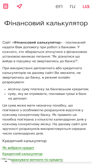 80%фінансовий калькулятор онлайн. розрахунки по іпотеці, вкладам, лізингу, кредитах і депозитах. поради та рекомендації щодо правильного вибору кредиту, лізингу