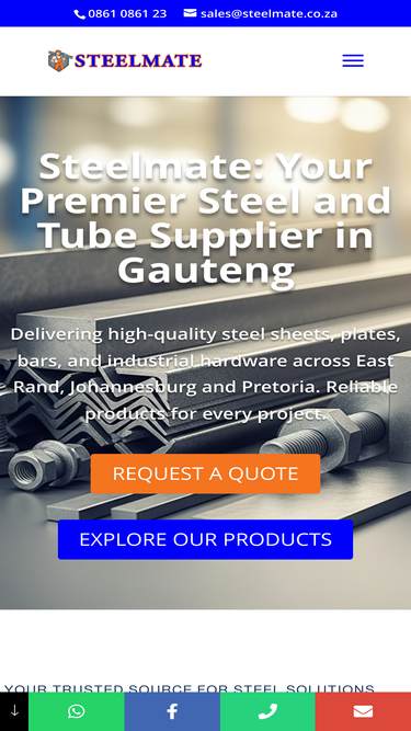 Steelmate is a trusted steel supplier in Gauteng, providing premium steel products, reinforcing bar, mesh, tubing, fencing and industrial hardware. Fast delivery, expert support and reliable stock since 1975. Call 0861 0861 23 for a quote.