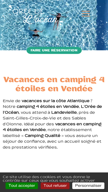 88%Pour réserver votre séjour ou pour toute demande d'information, contactez directement le camping Sun Océan.