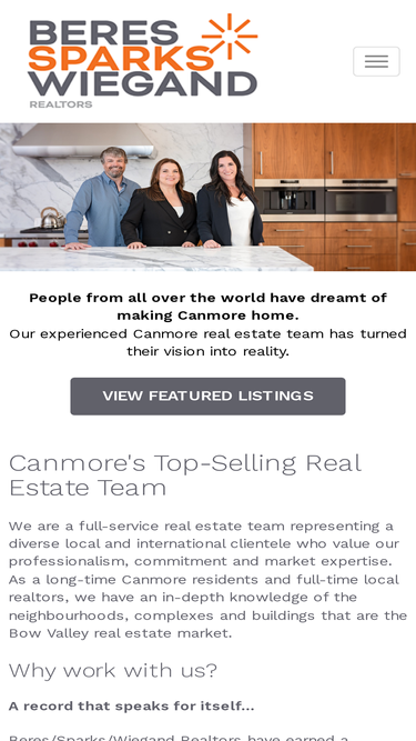 90%Beres, Sparks, & Wiegand Realtors is your premier Canmore Alberta real estate centre. Browse our listings of homes, townhouses, condos, and contact us for a private viewing.