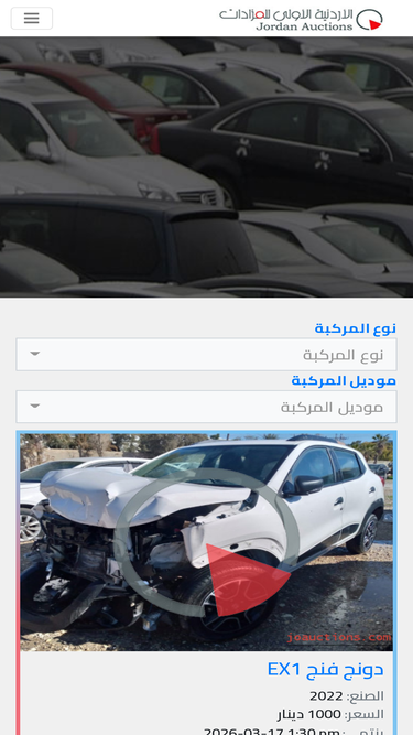 95%الاردنية الاولى للمزادات اول شركة متخصصة في مجال المزادات الالكترونية تعمل الاردنية الاولى للمزادات على مفهوم المزاودة المتبع في الاردن و تختص في تنظيم و ادارة مزادات السيارات مع القطاعين الخاص و الحكومي.