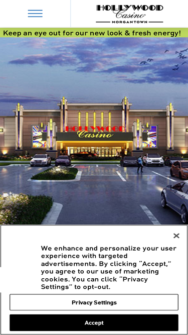 100%Hollywood Casino Morgantown, conveniently located just off the PA Turnpike at exit 298, will feature a variety of slots and table games, an innovative Barstool Sportsbook, an array of casual and unique dining options, and much more!