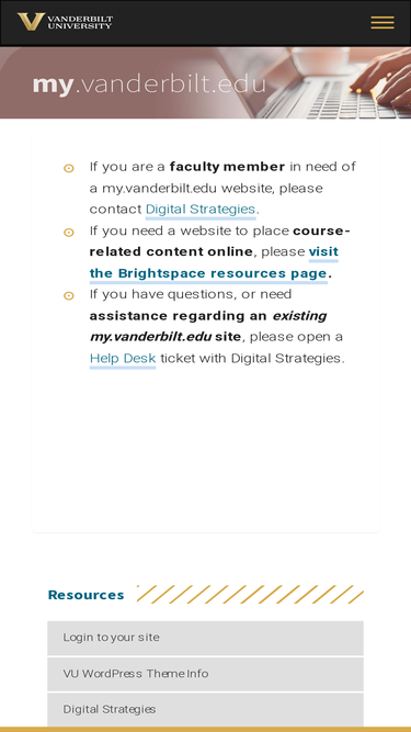 100%In addition to the terms of service below, my.vanderbilt.edu is governed by the same policies that govern all other electronic communications at Vanderbilt. Read the policies below now. Electronic Communications and Information Resources Policy (HR-025) Acceptable Use Policy Conflict of Interest Policy Technology Policy (Intellectual Property) Terms of Service My.vanderbilt.edu use is restricted to content related to the user’s work, study...