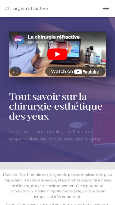 100%vous souhaitez découvrir les différentes détailles des interventions de chirurgie esthétique des yeux: chirurgie refractive, chirurgie de la cataracte et chirurgie de la cornée