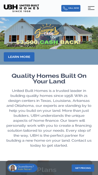 86%United Built Homes makes it easy to build on your land. Trusted since 1958 with in-house financing, local expertise, and a simple, proven process.