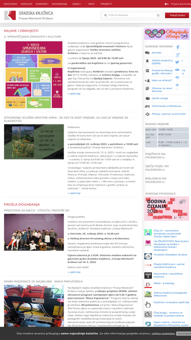 99%gradska knjižnica franjo marković križevci, a. g. matoša 4. 48260 križevci tel. 048/682-646; 048/270-129; knjiznica-krizevci@kc.t-com.hr; http://www.knjiznica-krizevci.hr