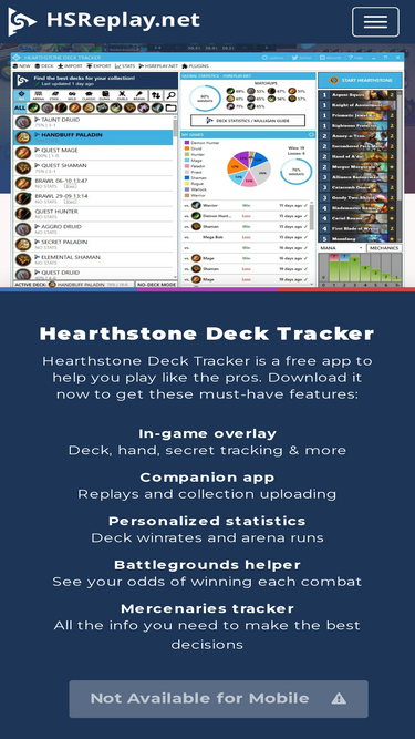 76%Watch and share Hearthstone replays directly from your web browser. Explore advanced statistics about decks and cards based on millions of games per week.