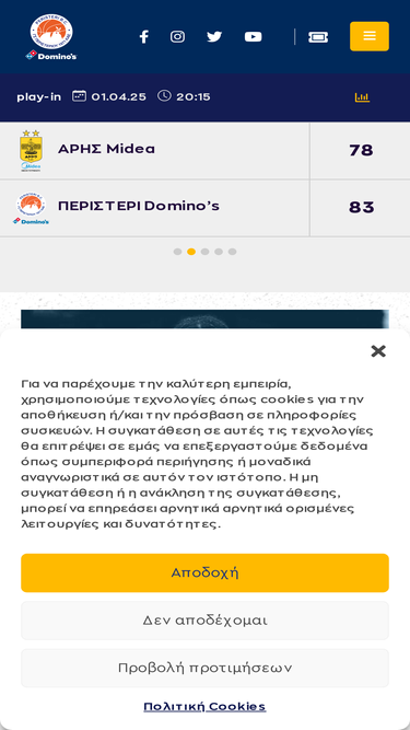 90%Το Περιστέρι Domino’s πάλεψε σκληρά και για τρία 10λεπτα ήταν ανταγωνιστικό απέναντι στον Παναθηναϊκό AKTOR, όπου ηττήθηκε (88-68) στον πρώτο προημιτελικό της Stoiximan GBL.