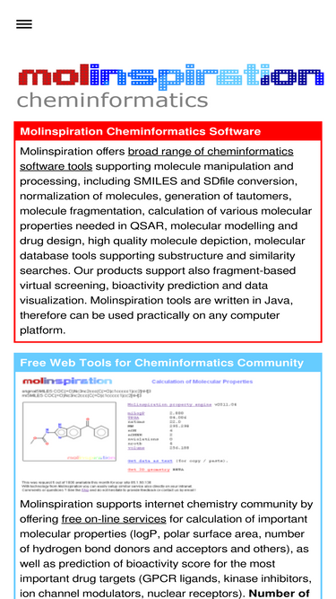 71%cheminformatics software, calculation of molecular properties, prediction of bioactivity, virtual screening, molecular databases ...