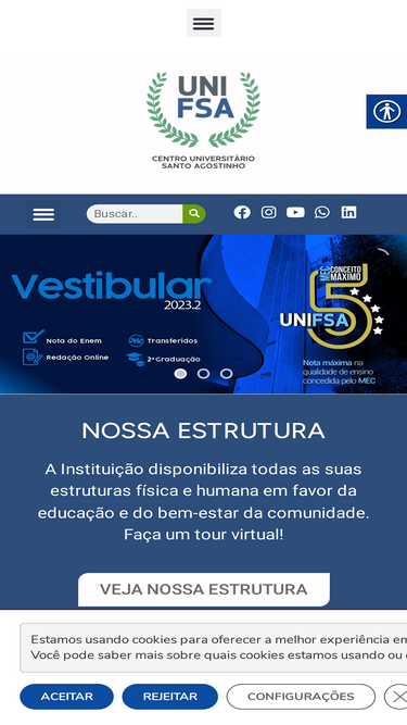 História Acesse a trajetória da Semana Científica do Centro Universitário Santo Agostinho de 2003 aos dias atuais. Anais da SEC Conheça os Anais da Semana Científica e os Trabalhos que foram publicados. Sala de Imprensa Acompanhe as principais notícias que foram publicadas sobre o evento e saiba as novidades.