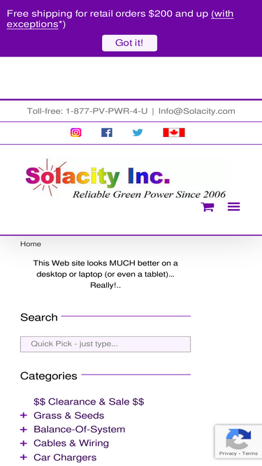 89%Shipping Solar Products is a challenge. They are often fragile, large, heavy and expensive. Sunderland Solar Inc. will ship your product via the least expensive carrier or by the carrier of your choosing. Be aware that most carriers require a signature when the parcel is delivered. When you do, you are signing a legal