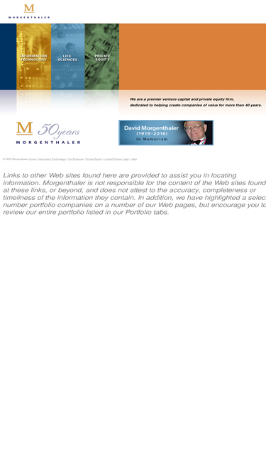 83%morgenthaler is a premier venture capital and private equity firm, dedicated to helping create companies of value for more than 40 years. our information technology, life sciences and private equity teams have worked with outstanding entrepreneurs to build more than 300 companies.