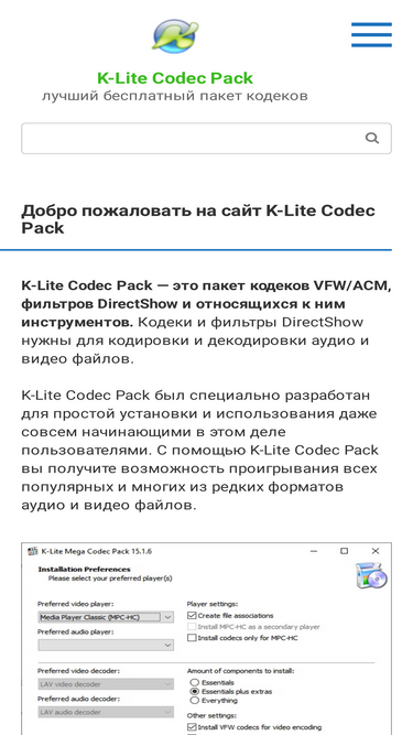 72%k-lite codec pack — набор специальных кодирующих и декодирующих кодеков, фильтров для сжатия и воспроизведения всех видов аудио и видео файлов для windows