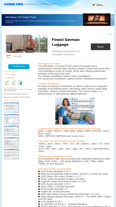 Media Player Codec Pack is a software package that lets you playback video and audio in your favorite media player, in one easy-to-use installer.