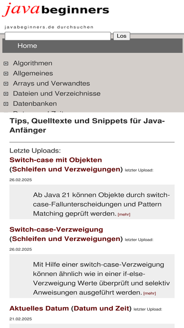 76%javabeginners.de stellt java-anfägern einfache java-quelltexte und codebeispiele bereit