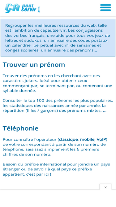72%solutions jeux de lettres et sudokus, conjugaisons, calendrier, statistiques des prénoms, annuaire des codes postaux, ...