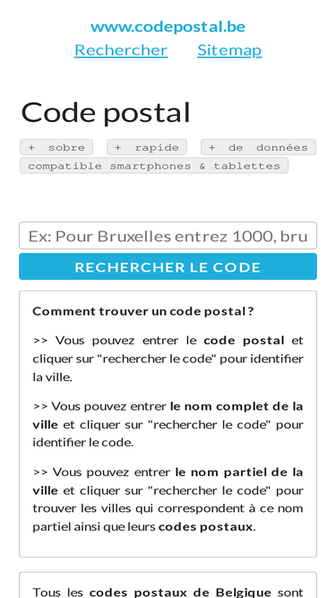 trouvez un code postal belge ou une ville - annuaire des codes postaux belges classés par province et commune.