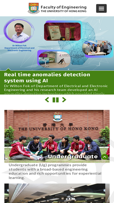 95%the faculty of engineering is one of the founding faculties of the university of hong kong established in 1912. since its foundation, the faculty kept pace with developments in the engineering world and is always in the forefront of engineering research, and evolved into one of the largest faculty in the university with five departments providing undergraduate, postgraduate and research degrees in a wide range of important fields of modern engineering, technology and computer science.