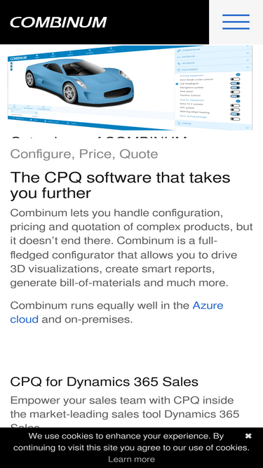 73%We are happy to answer any questions about Combinum CPQ and can also show a demo of how Combinum can simplify configuration and sales of complex products.