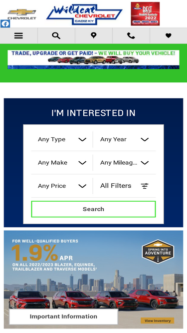 86%visit wildcat chevrolet for a variety of new and used cars by chevrolet in the cadiz area. our chevrolet dealership, serving hopkinsville, murray ky and fort campbell, is ready to assist you!