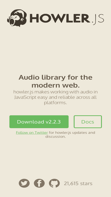 89%howler.js makes working with audio in JavaScript easy and reliable across all platforms.