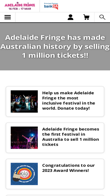 70%We are Adelaide Fringe, the Biggest Arts Festival in Australia! We were born 66 years ago (although we don't look a day over 25) and for 31 magical days and nights each year we completely take over the beautiful city of Adelaide, South Australia.