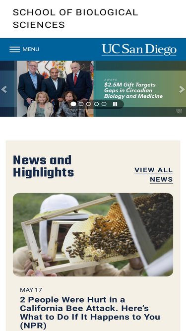 74%the uc san diego school of biological sciences is a vibrant center of scientific discovery and an agent of change. a key to our success has been our ability to recruit dynamic, award-winning faculty at both the senior and junior levels, thus ensuring that our nationally ranked research and educational programs will continue to grow in excellence with an infusion of new ideas and new energy.