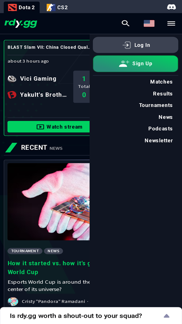 92%EGamersWorld☕ - ✋All information about esports events ➦ CS2 (CS:GO), Dota 2, LoL, Valorant, Rocket League ➦ Tournaments & Matches.