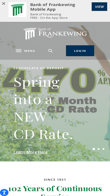 74%your friend in banking. bank of frankewing serving southern, middle tennessee, and northern alabama for the last 100 years. learn more about us.