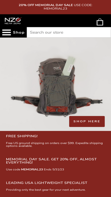 100%Near Zero®, home of the award-winning DEAN™ backpack, specializes in lightweight, all-in-one backpacking gear systems. Our patented, ready-to-go Backpacking Systems are designed to give outdoor enthusiasts of all levels the confidence to Get Out & Go™ with ease and efficiency.