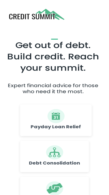 46%Get out of debt. Build credit. Reach your summit. Expert financial advice for those who need it the most. Payday Loan Relief Debt Consolidation Credit Counseling Student Loan Help Debt Relief Get on the Road to Financial Freedom Honest, actionable advice to help ordinary people get out of debt. Join Our Mailing List Actionable, weekly […]