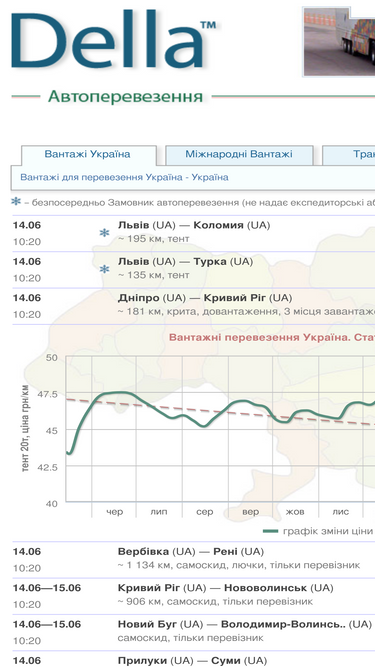 вантажні перевезення. ціни на перевезення вантажів, знайти вантажі та транспорт для автоперевезення по україні, міжнародні вантажні перевезення. della® україна