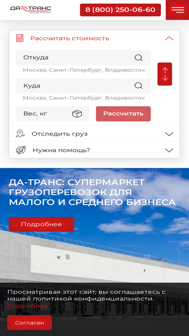 78%Услуги грузоперевозок из Москвы. Транспортная компания «ДА-ТРАНС» качественно, быстро, недорого перевезет груз в любую точку России, а также в страны СНГ, Европы и Азии. Для заказа перевозки в/из Москвы звоните 8(800) 250-06-60 (звонок по России бесплатно).