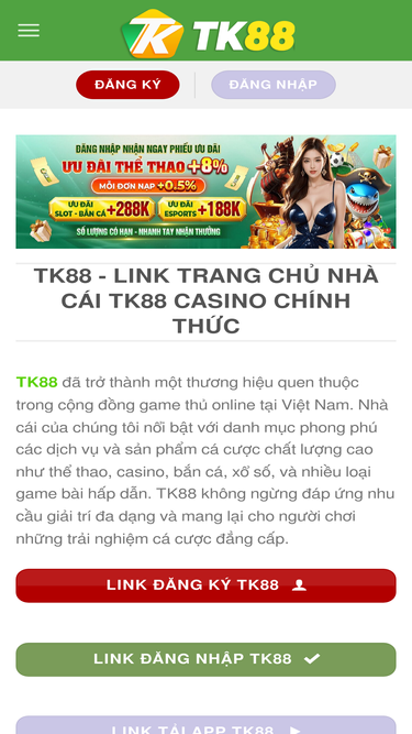 Tk88 ưu đãi cực hấp dẫn chỉ có tại TK88, phiếu ưu đãi nạp tiền lên đến 100% mỗi ngày! Tiền thưởng siêu khủng cùng vô vàn trò chơi thú vị.