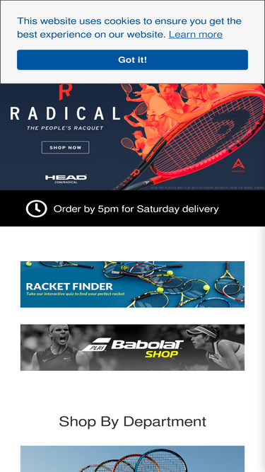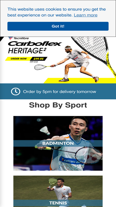57%megasale. same day despatch up to 5pm.great prices + fast delivery from leading uk tennis website.