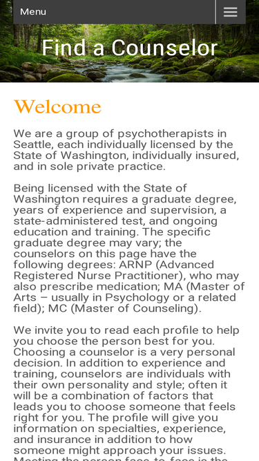 welcome we are a group of psychotherapists in seattle, each individually licensed by the state of washington, individually insured, […]
