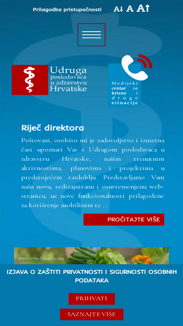 79%RIJEČ DIREKTORA Poštovani, osobito mi je zadovoljstvo i izuzetna čast upoznati Vas s Udrugom poslodavaca u zdravstvu Hrvatske, našim trenutnim aktivnostima, planovima i projektima u predstojećem razdoblju. Članicama Udruge, kao i svim posjetiteljima naše web-stranice pruža se mogućnost da saznaju korisne i zanimljive informacije o svim aktivnostima tijela i uprave Udruge, a radi poboljšanja informiranja i...