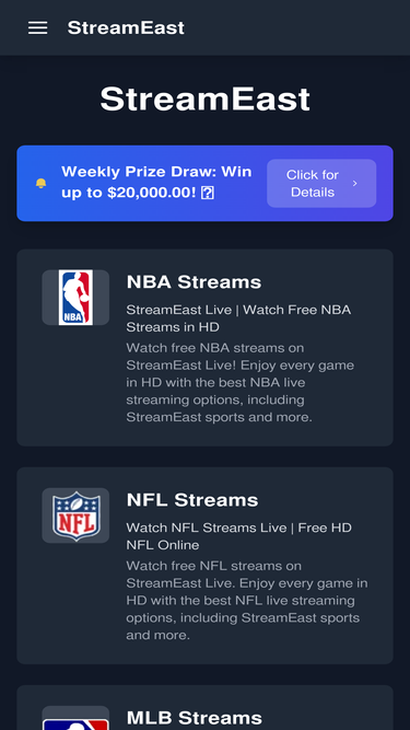 92%StreamEast offers free live sports streaming. Watch your favorite sports events, including soccer, NBA, NFL, and more, all in HD. No sign-up required.