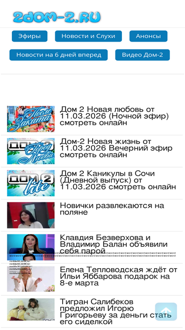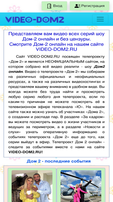 100%Смотреть дом 2 свежие серии онлайн бесплатно! Эфиры дом-2 с самом высоком качестве. А также все самые последние последние новости и слухи телепроекта дом-2 читайте на dom2n.ru